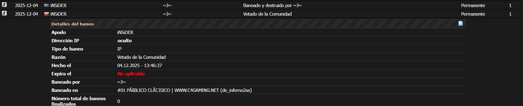 Fecha y Hora del Baneo: 04.12.2025 - 13:46:37